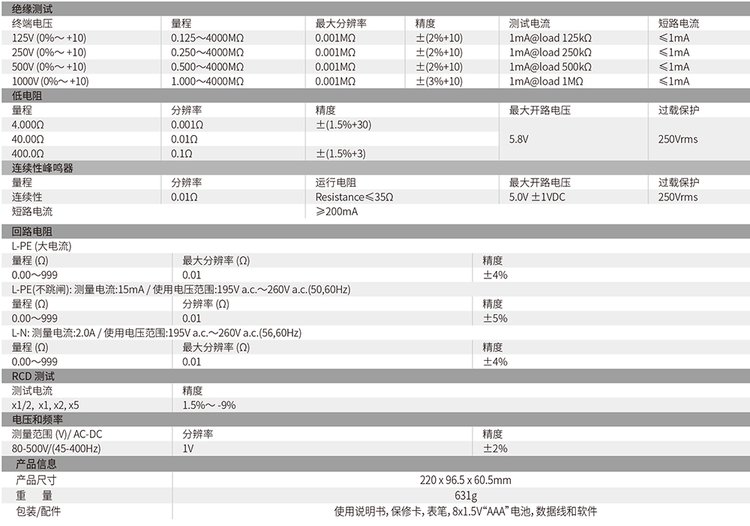 快速高效測(cè)試:絕緣電阻、低電阻、接地電阻、電壓、RCD、PFG和PSC