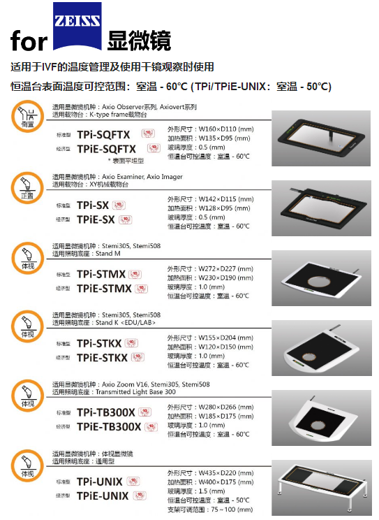 可選擇的標(biāo)準(zhǔn)型恒溫臺(tái)型號(hào)