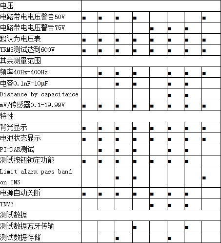 MIT400系列絕緣電阻測試儀技術(shù)參數(shù)總表: