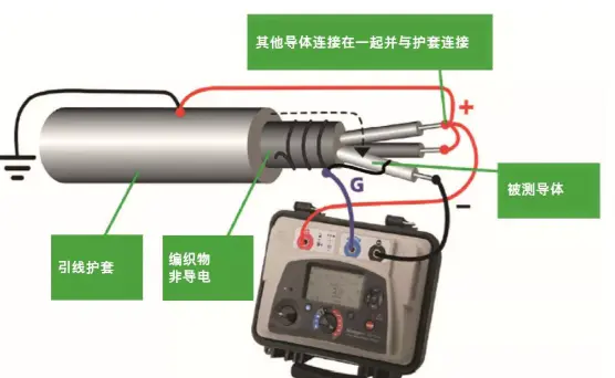 測量線芯和其他導(dǎo)體之間的絕緣:
