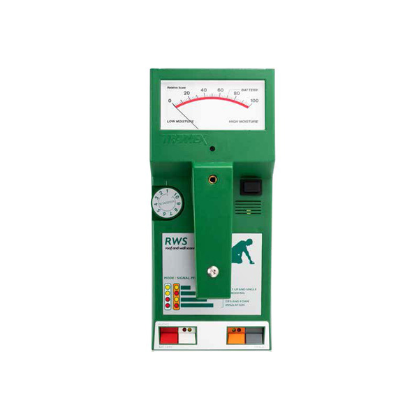 Tramex公司的RWS是一個(gè)電子手持式濕度掃描儀及檢測(cè)儀,其工作基于電子阻抗原理。通過(guò)使用電子阻抗測(cè)量,無(wú)害信號(hào)從儀器底部的電極傳輸至被測(cè)區(qū)域的深度。這些信號(hào)測(cè)量讀數(shù)電子阻抗的變化,然后儀器將電子阻抗的變化轉(zhuǎn)化成相對(duì)含水量并即時(shí)地顯示在清晰的大模擬表盤(pán)上。讀數(shù)即時(shí)且連續(xù)。同時(shí),RWS配備有一個(gè)發(fā)生裝置,用于高讀數(shù)的報(bào)警。RWS可以以不太貴的價(jià)格和不太復(fù)雜的操作,對(duì)大部分纖維加固EIFS墻面覆蓋系統(tǒng)、諸如卷材屋面、非導(dǎo)電單層膠合板、改性泡沫屋面材料的屋面系統(tǒng)給出必要的信息進(jìn)行濕度評(píng)估。