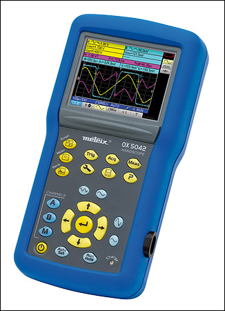 OX5042 手持式隔離通道示波器 產(chǎn)品編號:OX5042-CK 超現(xiàn)代HANDSCOPE示波器是其領(lǐng)域中理想的應(yīng)用產(chǎn)品。示波器的專業(yè)設(shè)計使儀器結(jié)構(gòu)緊湊、簡單易用。它的人機界面優(yōu)先考慮到用戶便于使用并易于讀用。儀器具備高對比度顯示和LED背光,即使是在光線不好的情況下或遠(yuǎn)處仍能容易的讀取數(shù)據(jù)。所有的功能鍵都在儀器的前面板上并能單手操作. 四合一功能: > 40 MHz 的示波器 > 雙8,000計數(shù)的萬用表 > 諧波分析 > 電能分析 人