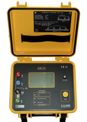 數(shù)字式接地電阻測(cè)試儀CA6460,可進(jìn)行接地電阻和土壤電阻率的測(cè)量。接地電阻的測(cè)量范圍為 0 至 2000 Ω,采用自動(dòng)量程設(shè)計(jì),自動(dòng)切換到最佳測(cè)量量程。CA6460外殼堅(jiān)固,操作簡(jiǎn)單,可進(jìn)行多種測(cè)量,是電氣維護(hù)人員的理想之選。其機(jī)械指標(biāo)和安全指標(biāo)(如:沖擊測(cè)試、振動(dòng)測(cè)試、跌落測(cè)試等)均符合IEC標(biāo)準(zhǔn)。由于采用高抗干擾設(shè)計(jì),其適用于各種復(fù)雜惡劣的環(huán)境(如存在影響測(cè)量精度的高雜散電流)。