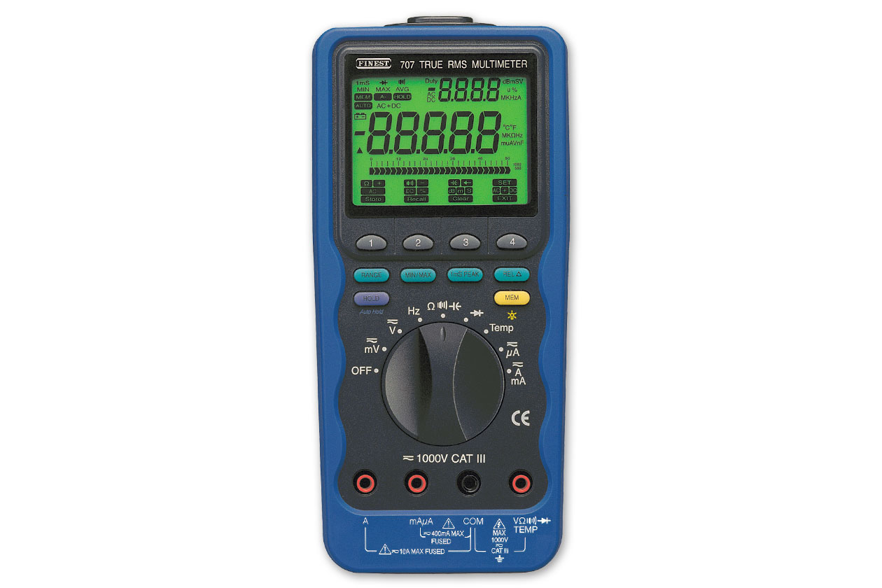 FINEST-F707是世界級的萬用表,采用當今韓國尖端的電子科技,具有速度快、準確度高的特點,有溫度測量、數(shù)據(jù)存儲及連接電腦的功能,F(xiàn)707代表了韓國手持式萬用表制造的最高水準。