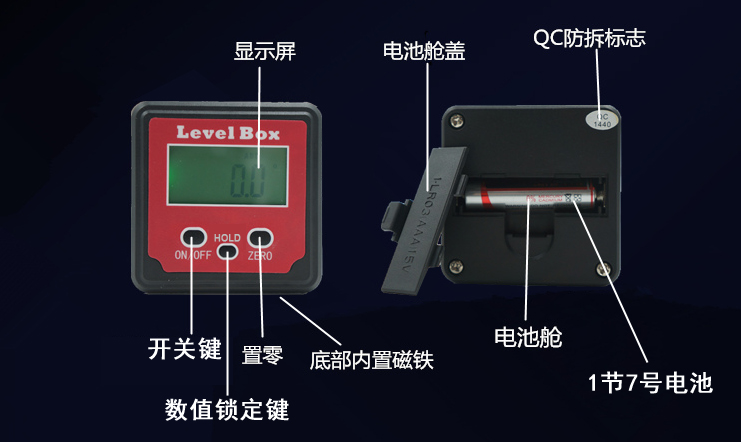 9、底面帶磁,可靠吸附鐵質(zhì)工件,特別方便測(cè)量斜切鋸的切面角度,車(chē)輛檢修等;