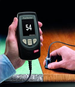 PosiTector200涂層測厚儀出廠時已經(jīng)校準好可直接測量。隨機包括可追溯到NIST或PTB的長式校準證書,該證書記錄了PosiTector200在我們的校準實驗室對可追溯到國家計量機構(gòu)的標準進行的實際讀數(shù)。 有些廠家提供的證書或合格證書,通常不包括實際的儀器讀數(shù)。 PosiTector200經(jīng)過出廠校準,無需校準或調(diào)整即可測量的大多數(shù)聚合物涂層。如果需要,可以對已知厚度的涂層樣品進行簡單的厚度調(diào)整,使其成分盡可能接近預(yù)期應(yīng)用。為了獲得最佳結(jié)果,樣品的厚度應(yīng)等于或略大于待測涂層的最大預(yù)期厚度。 PosiTector200可以用來測量金屬基體上的涂層嗎? 在很多情況下,是可以測量的!但是,應(yīng)該注意以下幾點: